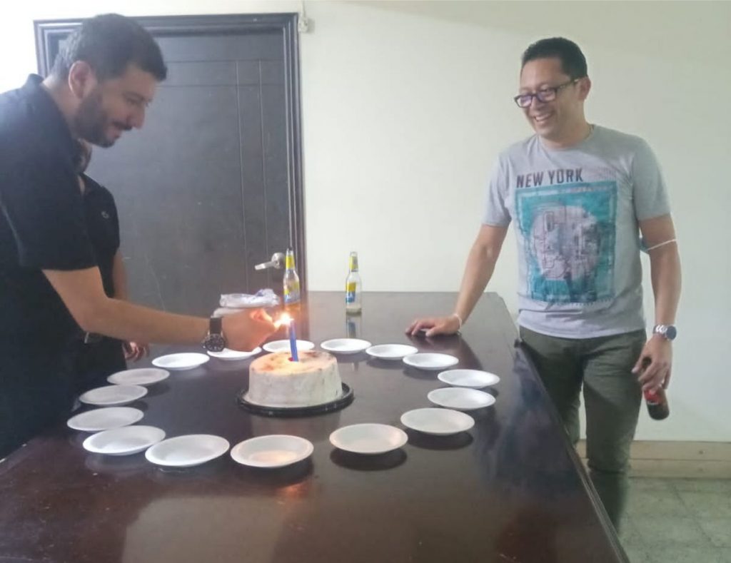 Feliz cumpleaños: ¡Y los cumplió feliz! cómo no todo debe ser trabajo, dentro del tiempo de la asamblea cumple años de vida el compañero William Cajamarca, delegado oficial de la Seccional Bogotá, con quien pudimos copartir un trozo de torta.