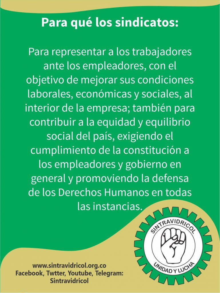 Los sindicatos están presentes en las empresas para mejorar las condiciones laborales, económicas y sociales de los trabajadores y sus familias.